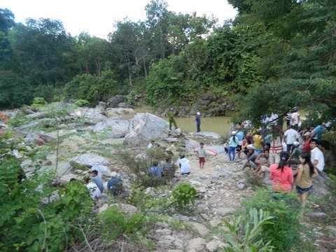 Nhiều người chứng kiến cho biết, sau khi hai em lên khu vực đầu nguồn Thác Trắng tắm, đạp xe xuống khu vực hạ lưu dựng xe đạp bên lề, rồi tiếp tục tắm.