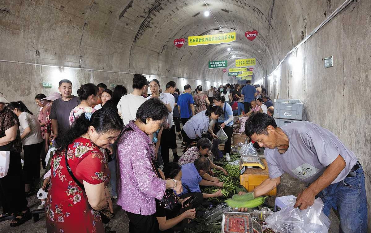 Nơi trong ảnh trên từng là hầm tránh bom trong chiến tranh, nay được cải tạo thành chợ nông sản. Nhiều điểm khác ở các quận như Giang Bắc, Dực Bắc cũng nối thành khu “tổ hợp ngầm” rộng khoảng 20.000m², đủ tiện ích phục vụ đời sống và du lịch.