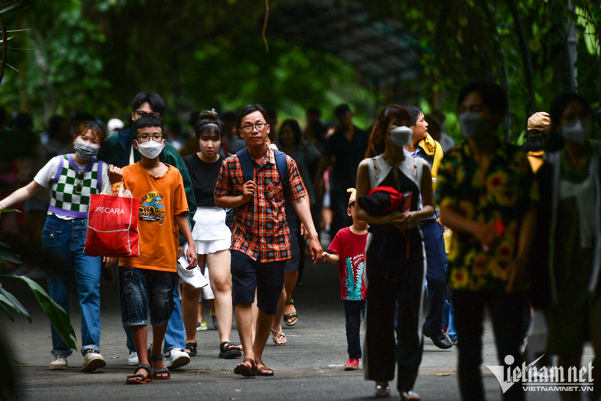Trưa 2/9, rất đông người dân đến công viên Thảo Cầm Viên (quận 1, TP.HCM) vui chơi. Khu vực sân khấu biểu diễn xiếc nghệ thuật đông đúc khách đến xem và chơi trò chơi. Càng về trưa nơi đây càng đông. Khu vực vui chơi quá tải, người lớn, trẻ nhỏ chen chúc nhau giữa thời tiết nắng nóng.Các khu vực nuôi thú như voi, hươu cao cổ, khỉ, bò sát… thu hút đông khách tham quan. “Dịp nghỉ lễ cũng là dịp gia đình tranh thủ đưa các cháu đi tìm hiểu về các loại động vật vốn chỉ thấy trong sách vở và trên truyền hình”, anh Hiệu (ngụ quận 10) chia sẻ.Nhiều người tập trung phía ngoài chuồng nuôi hươu cao cổ và cho chúng thức ăn. Loài vật này khá thân thiện nên Thảo Cầm Viên xây rào ngăn cách thấp để mọi người có thể tiếp cận gần các con vật.Dự báo lượng khách sẽ còn tăng cao trong những ngày tiếp theo. Ban quản lý Thảo Cầm Viên đã tăng cường bãi giữ xe, nhân viên để phục vụ nhu cầu của khách.Càng về trưa, lượng khách đổ về càng đông đúc, nhiều người tỏ ra mỏi mệt. Áo mưa và vải bạc là vật dụng phổ biến được các gia đình sử dụng để nghỉ chân.Nhiều người còn mang võng vào đây nằm nghỉ giữa trưa. Đa số gia đình đều mang theo thức ăn, nước uống để ăn trưa sau khi vui chơi, tham quan.Chị Thu Thủy (Bình Dương) đến nghỉ lễ cùng gia đình mang theo 2 lều mini. "Tôi đến đây từ sớm để xí chỗ. Mặc dù đông đúc người đến tham quan nhưng không khí mát mẻ, mấy đứa trẻ chơi khá vui", chị chia sẻ.Tận dụng những nơi có bóng mát, người dân trải bạt nằm la liệt khắp các chỗ trống.