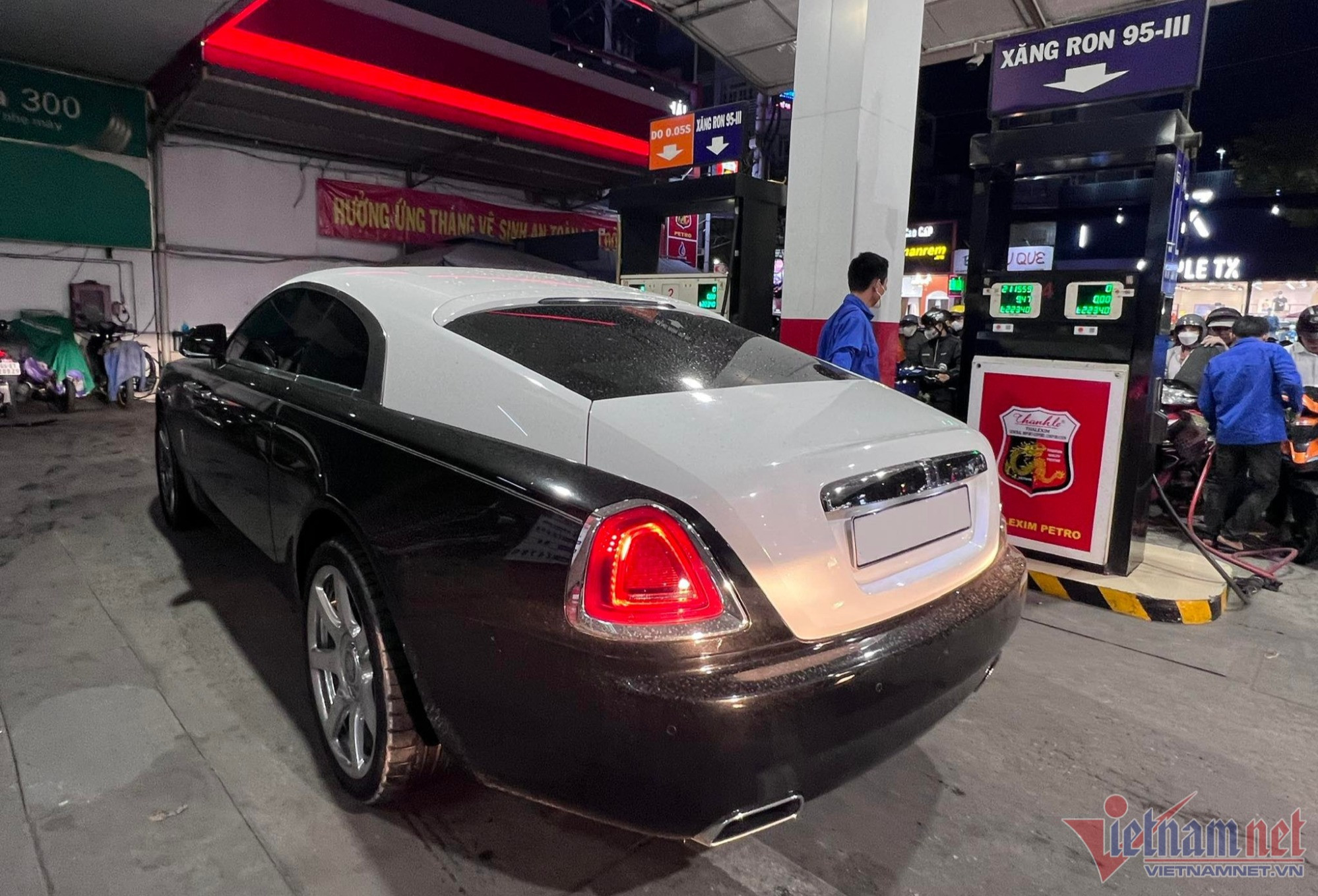 Phải đi đến cây xăng thứ 7 anh Tiến Anh mới có thể nạp thêm nhiên liệu cho chiếc Rolls-Royce nhưng người bán chỉ đồng ý bơm 300 ngàn đồng. "Ô tô bơm 300 ngàn đồng, xe máy 50 ngàn đồng. Đó là quy định của cây xăng, có năn nỉ lấy lý do xe hết xăng, xếp hàng cả tiếng cũng không được châm trước. Đổ xong lên xe báo đi thêm được 47 km mà tôi toát hết mồ hôi, chỉ sợ tắc đường", anh Tiến Anh kể lại.