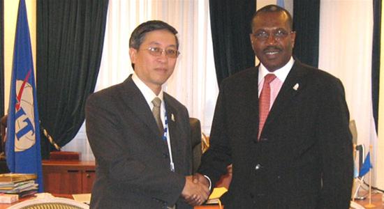 Tiến sĩ Hamadoun I. Touré, Tổng thư ký Liên minh Viễn thông Quốc tế (ITU) tiếp Thứ trưởng Bộ Thông tin và Truyền thông Lê Nam Thắng, trưởng đoàn Việt Nam tham dự Hội nghị WRC 2007 |