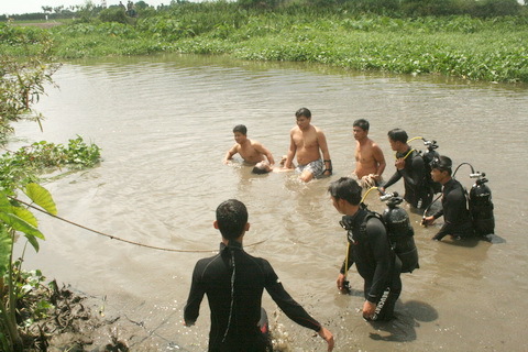 Đến 11h30, khoảng 10 chiến sĩ cứu hộ đã đến hiện trường triển khai tìm kiếm. Người nhái đã lặn sâu dưới đáy rạch và đưa được nạn nhân lên bờ, làm thủ tục bàn giao thi thể cho chính quyền địa phương.