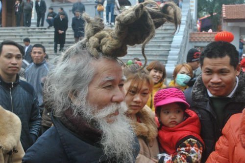 Một cụ ông tuổi đã ngoài 70 nhưng nét mặt vẫn còn rất hồng hào, vóc dáng còn rất cứng cáp, làn da ửng hồng và luôn niềm nở trò chuyện với du khách. Điều đặc biệt ở chỗ, sở hữu một mái tóc hình con rồng trên đầu kết hợp với bộ râu quai nón và bạc trắng như sợi cước khiến cho cụ trông như một “ông bụt, ông tiên” nên đã thu hút trí tò mò của hàng ngàn du khách.