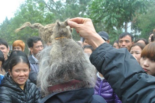 Nhiều người mắt đã thấy nhưng tay vẫn phải sờ để chứng minh bộ tóc cụ Long là thật.