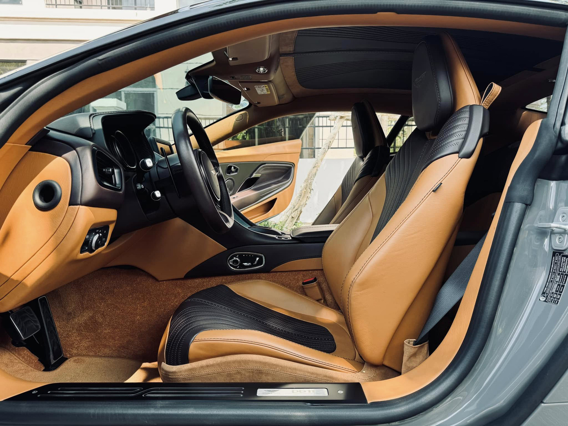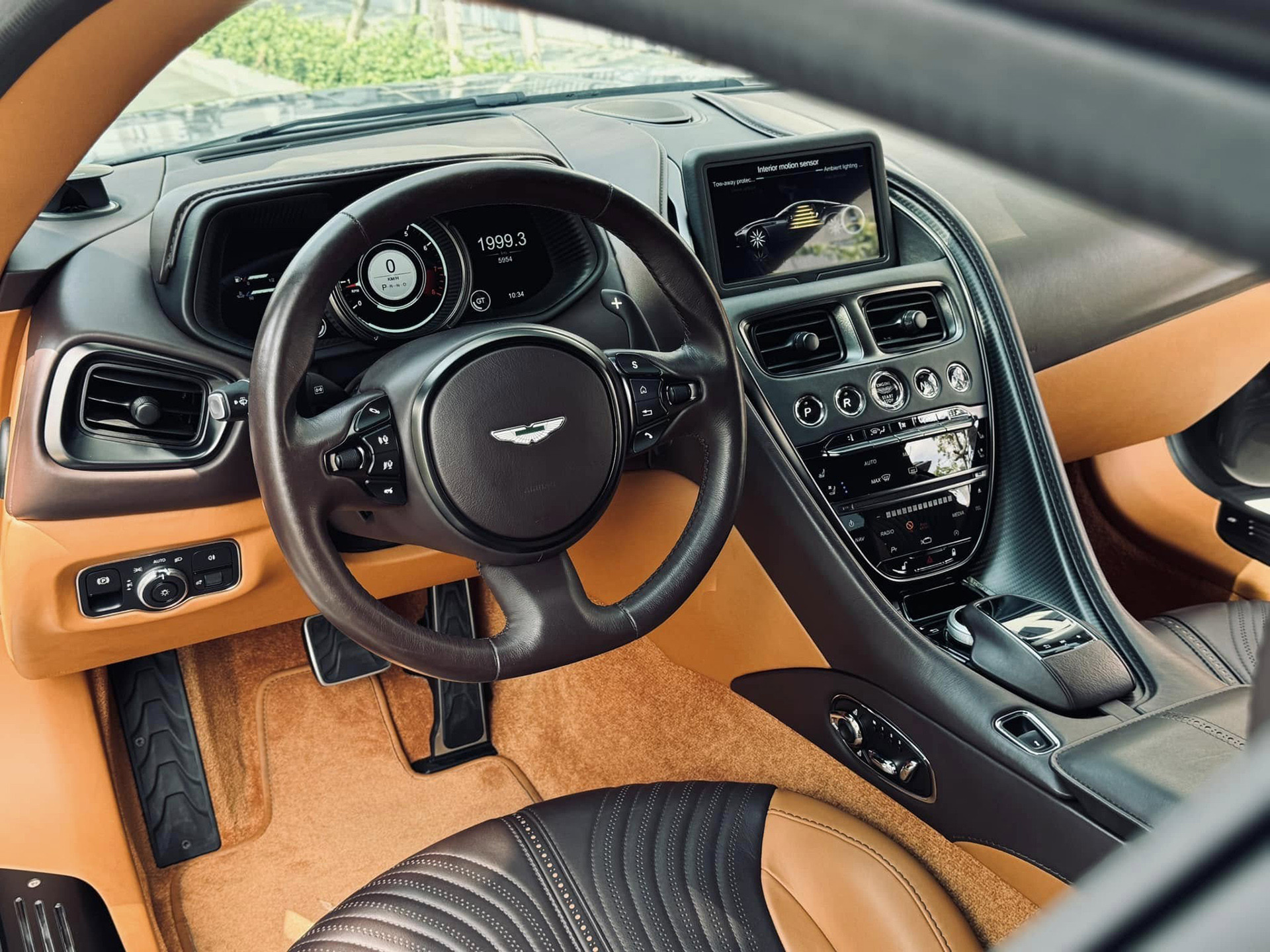 Bên trong nội thất chiếc DB11 này dùng tông màu nâu chủ đạo, kết hợp cùng màu đen tương phản ở nhiều vị trí. Bên cạnh một số chi tiết như táp-pi cửa, bảng điều khiển trung tâm ốp sợi carbon trang trí, hầu hết khoang cabin xe đều bọc da cao cấp nhằm mang đến sự sang trọng, lịch lãm.