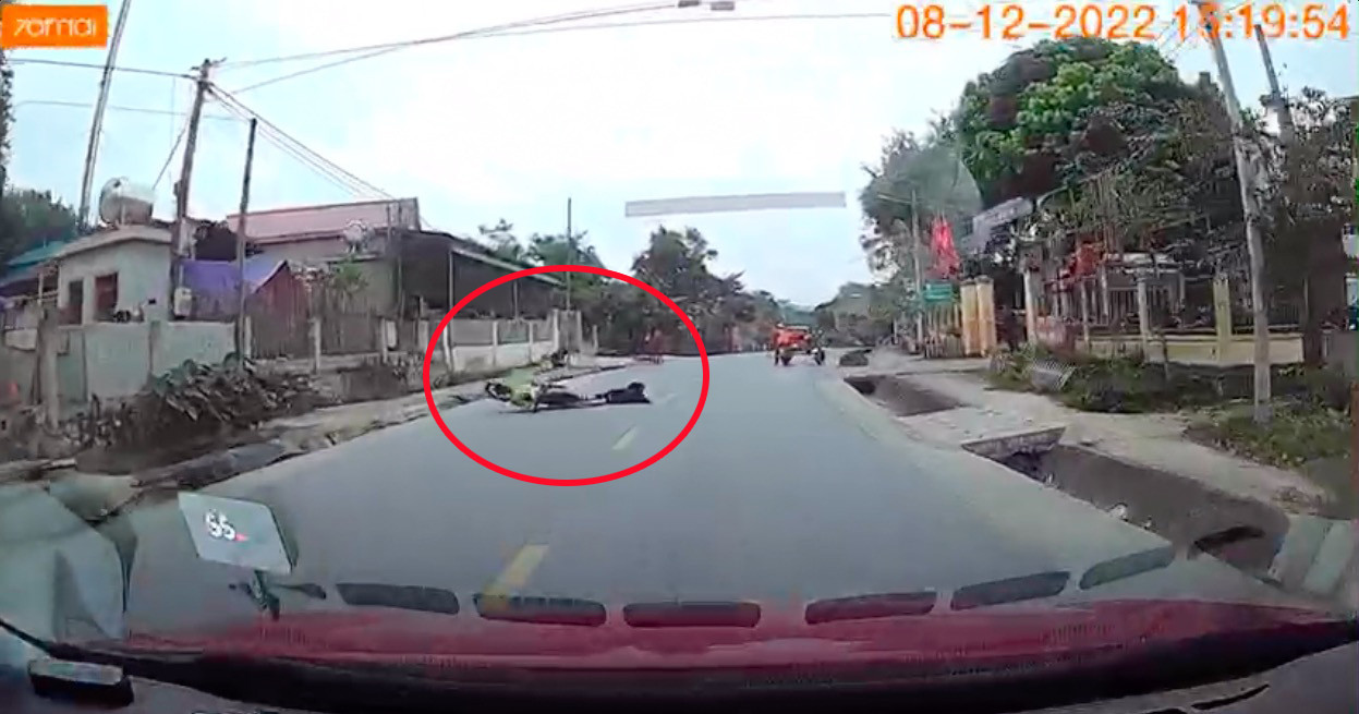 Chia sẻ với VietNamNet, anh Tuấn cho biết, khi đang di chuyển ở đoạn đường trên theo hướng đi huyện Kỳ Sơn thì bất ngờ phía trước có một nam thanh niên đi xe máy không đội mũ bảo hiểm vào cua rồi cả người và xe ngã ra đường, ngay trước đầu ô tô.