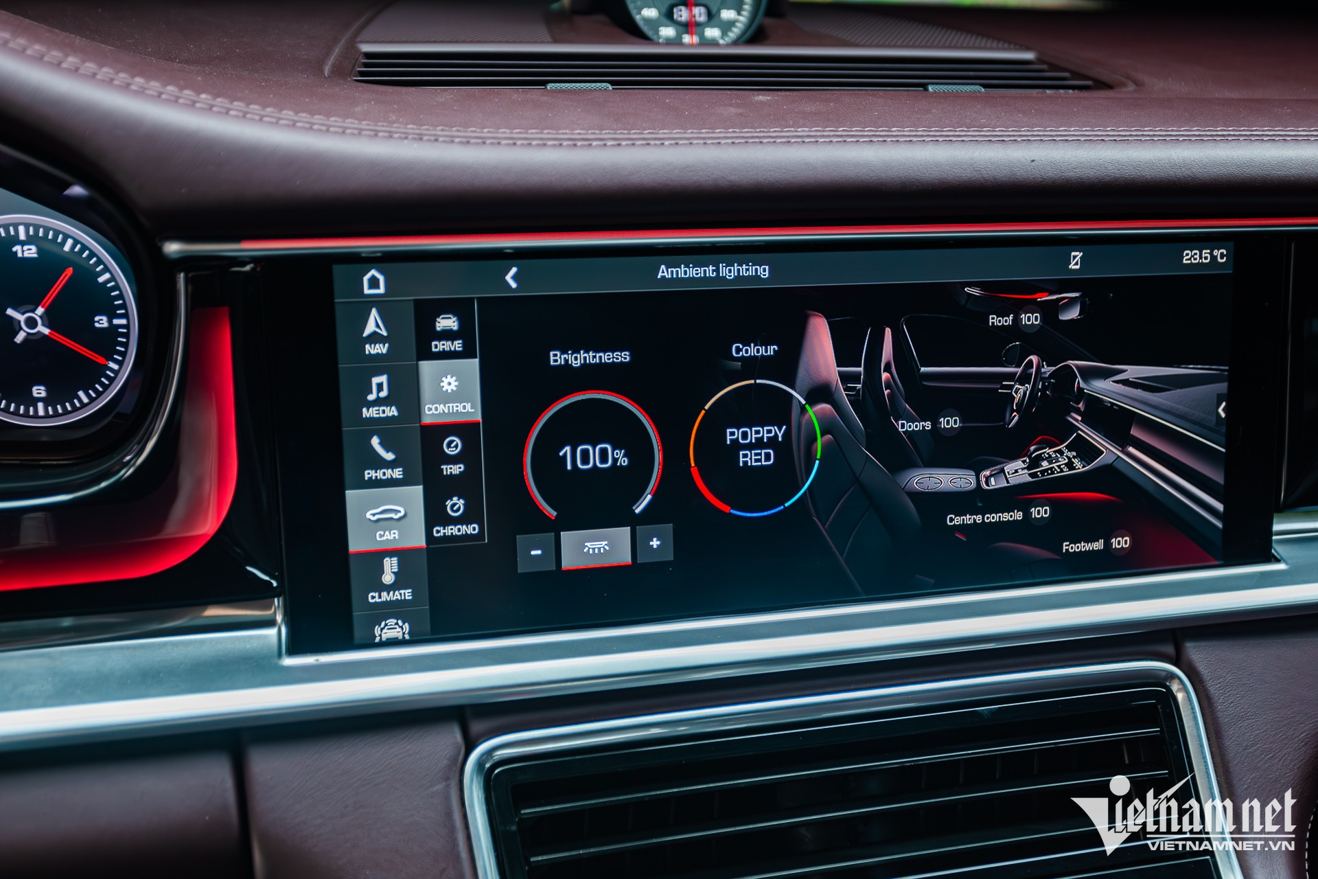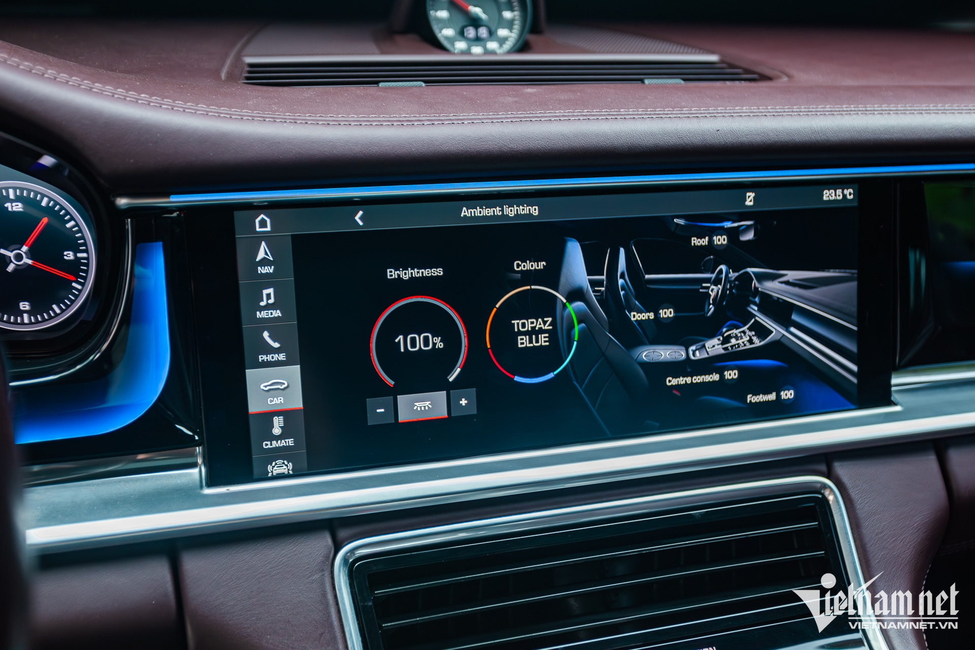 Khi sử dụng trong trời tối, dải viền LED có sắc thái êm dịu, vừa đủ giúp nội thất xe thêm cá tính nhưng vẫn giữ được nét sang trọng vốn có của dòng xe Porsche.