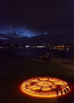 Đĩa bay Glyph được làm bằng khung nhôm, 37 tấm panel, 455 dải đèn LED. Tổng cộng trên đĩa bay lắp 113.096 bóng đèn LED phát ra ánh sáng màu cam, tiêu thụ 20 KW điện.