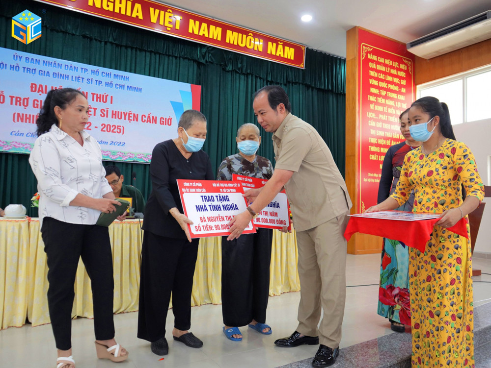 Theo đó, ngày 8/7/2022, nhân dịp kỷ niệm 75 năm Ngày Thương binh Liệt sĩ (27/7/1947 - 27/7/2022), công ty Địa Ốc Xanh Toàn Cầu đã tiếp tục trao thêm 3 căn nhà tình nghĩa (trị giá 90 triệu đồng/căn) cho bà con khó khăn trên địa bàn huyện Cần Giờ.