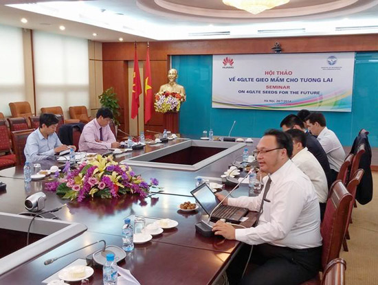 Ngày 28/7/2014, Bộ TT&TT đã cùng với Huawei tổ chức hội thảo với chủ đề "4G/LTE gieo mầm cho tương lai". Phát biểu tại buổi hội thảo, ông Phan Thảo Nguyên, Phó Vụ trưởng Vụ Hợp tác quốc tế của Bộ TT&TT cho biết, năm 2009 Việt Nam triển khai cung cấp dịch vụ 3G. Tuy việc triển khai 3G của Việt Nam chậm hơn thế giới 9 năm nhưng đang có bước phát triển mạnh mẽ. Theo đánh giá chung việc chuyển từ 2G sang 3G sẽ chậm hơn việc chuyển từ 3G lên 4G. Hiện Bộ TT&TT đã cấp phép thử nghiệm 4G cho một số doanh nghiệp di động của Việt Nam để chuẩn bị cho việc đánh giá và lựa chọn công nghệ.
