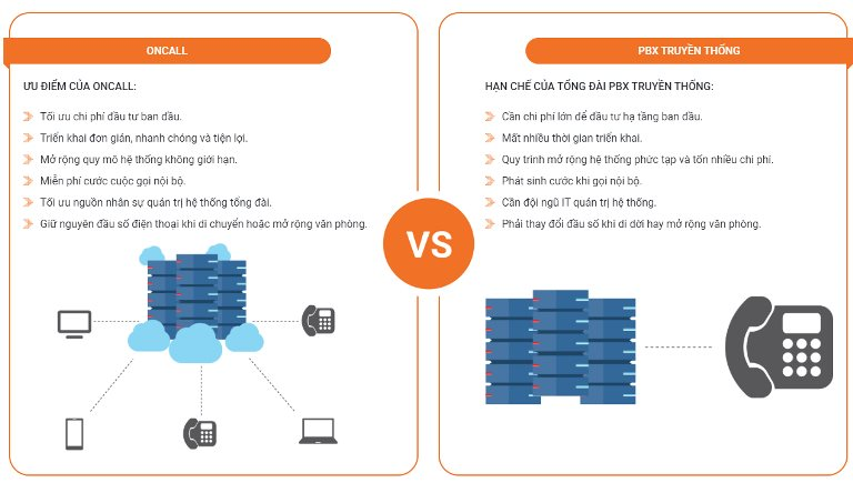 Đặc biệt, OnCall có khả năng kế thừa, nâng cấp chuyển tiếp từ hạ tầng hiện hữu và tích hợp được nhiều dịch vụ như số cố định, 1800 và 1900 với sự đơn giản hóa quy trình cài đặt, vận hành hệ thống, giao diện quản lý thân thiện, giúp doanh nghiệp quản trị tổng đài dễ dàng, khả năng đáp ứng và mở rộng mọi quy mô cũng như yêu cầu giải pháp toàn diện cho doanh nghiệp: tổng đài IP, Call Center, hội nghị thoại, hội nghị truyền hình, CRM …