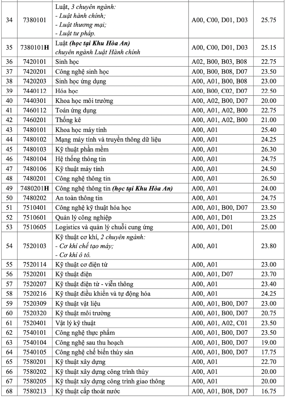 Các mã ngành Học tại khu Hòa An (Mã ngành có chữ H): sinh viên chỉ học tại Khu Hòa An vào năm thứ 2 và năm thứ 3; những năm còn lại học tại Cần Thơ.