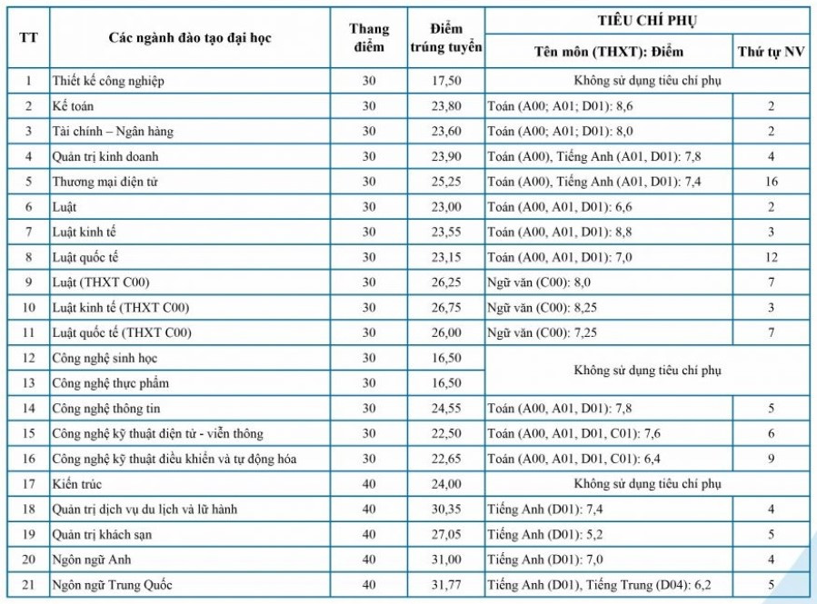 Điểm chuẩn các trường đại học phía Nam năm 2022