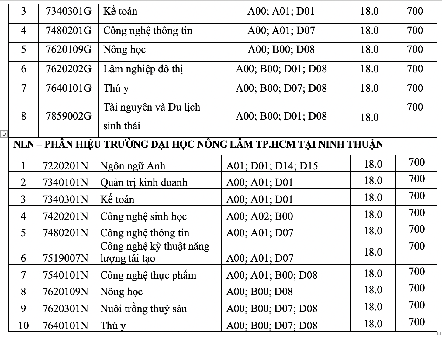 Thí sinh mong muốn nhập học tại Trường Đại học Nông Lâm TP.HCM cần đăng ký chính xác mã trường là NLS (Cơ sở chính), NLG (Phân hiệu Gia Lai), NLN (Phân hiệu Ninh Thuận) và ngành đã đủ điều kiện trúng tuyển là nguyện vọng 1 trên hệ thống, thí sinh mới được công nhận trúng tuyển chính thức.