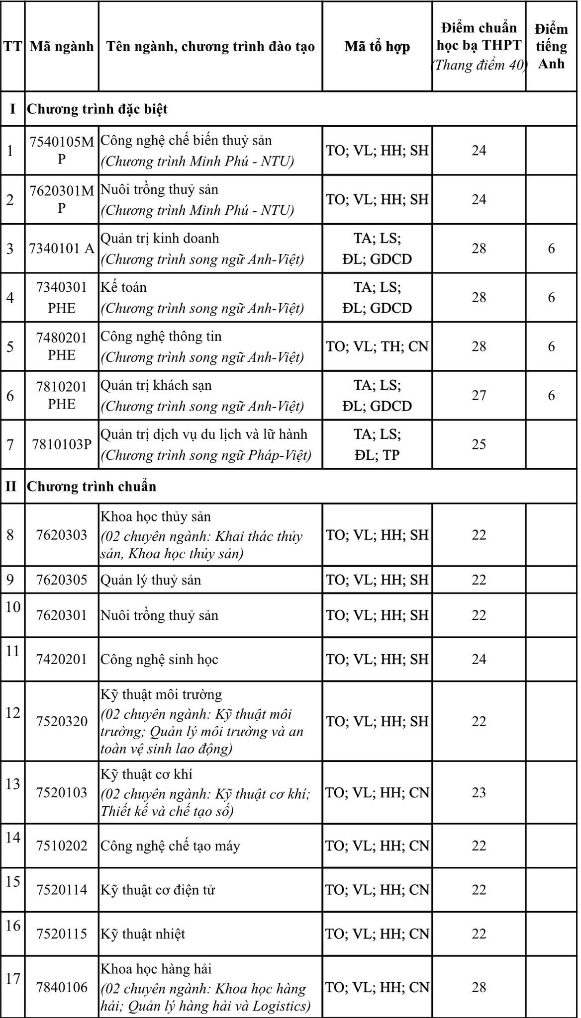 Điểm chuẩn theo phương thức xét học bạ của Trường ĐH Nha Trang cụ thể như sau: