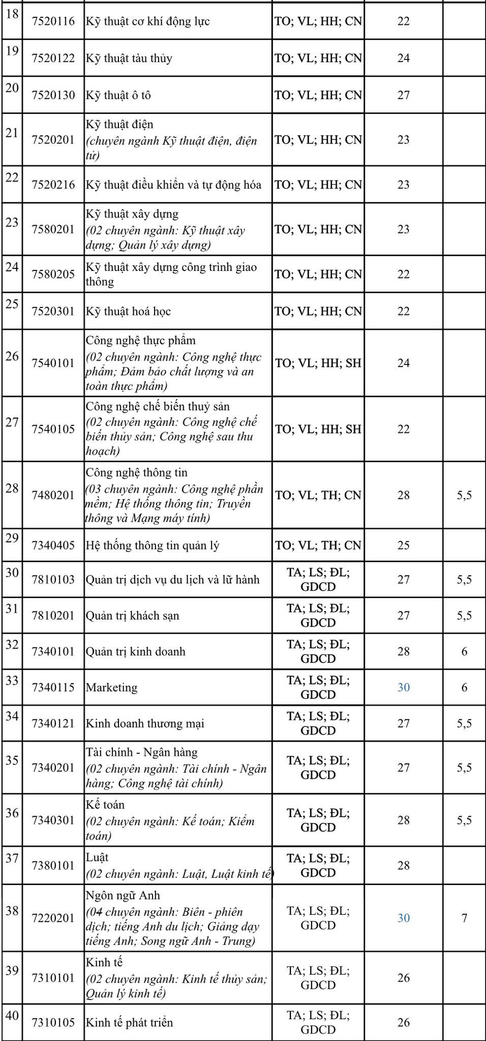 Các ngành còn lại của trường lấy điểm chuẩn học bạ dao động từ 22 - 28 điểm.