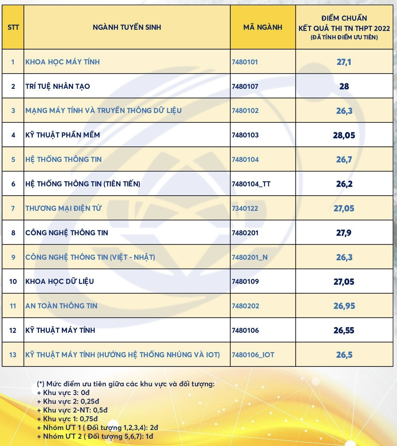 Còn năm 2021, Trường ĐH Công nghệ thông tin TP.HCM lấy điểm chuẩn theo phương thức điểm thi tốt nghiệp THPT, ngành cao nhất là 27,55 điểm.