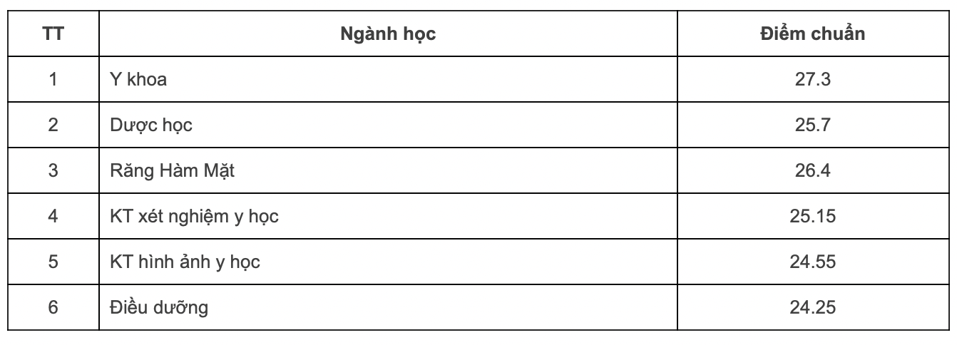 Theo đó, ngành Y khoa có điểm chuẩn cao nhất là 27,3