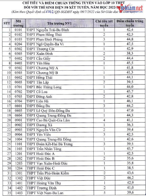 Hà Nội hạ điểm chuẩn vào lớp 10Chiều 15/7, Sở GD-ĐT Hà Nội công bố điểm chuẩn trúng tuyển bổ sung vào lớp 10 các trường THPT công lập năm học 2022-2023.