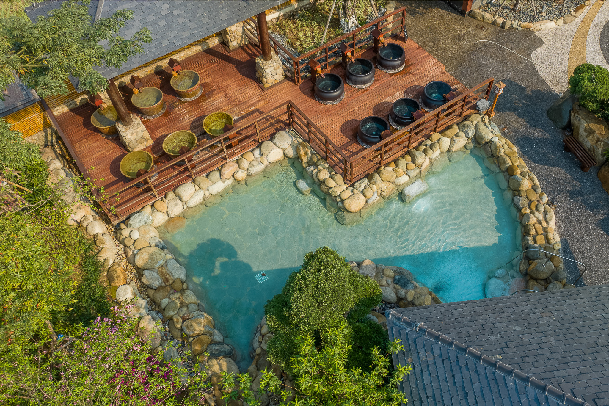 Tất cả các bể tắm đều nằm ngoài trời nên vừa tắm, khách vừa hít thở bầu không khí trong lành giữa núi rừng bao la, ngắm nhìn mây trời, núi rừng xanh mướt bao quanh. Dội lên trong không gian, chỉ có tiếng lá rừng xào xạc và những âm thanh xa xăm của thiên nhiên. Sự thanh bình khiến mỗi du khách cảm nhận được sâu sắc sự kết nối giữa tâm trí, cơ thể với tự nhiên, để thả lỏng, tự do buông bỏ mọi lo lắng.