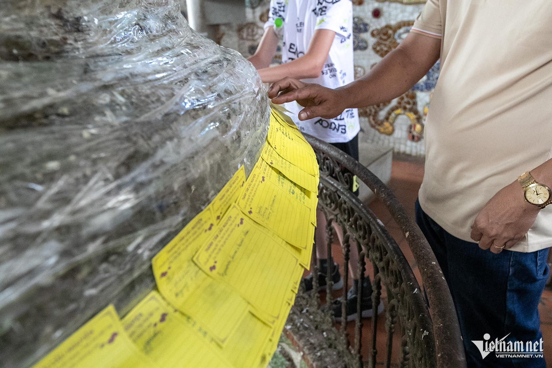 Du khách đến đây thường viết tên mình và người thân vào giấy rồi dán lên chuông đại hồng chung để cầu bình an, may mắn. Sau khi dán giấy, người dân, du khách thỉnh 3 tiếng chuông để cầu nguyện.