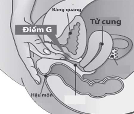 Điểm G được xác định là phần mô xốp nằm phía sau xương mu, bao quanh niệu đạo, rộng khoảng 3 - 5cm2. Người ta cho rằng điểm G là nơi có rất nhiều đầu mút các dây thần kinh nên khi bị kích thích, phụ nữ dễ đạt được khoái cảm. Vùng này gây hưng phấn tình dục rất nhiều khi được kích thích, do thể mô xốp dồn tích máu lại và cương lên. Khi đạt được đỉnh điểm vùng này có thể tiết nhiều dịch nhầy, dịch nhờn. Điều quan trọng bạn phải nhớ trước khi kích thích điểm G, bạn cần tác động vào những nơi khác như vùng ngực, phía sau gáy hay những vùng khác trên cơ thể nàng để tạo hưng phấn ban đầu giúp âm đạo bắt đầu tiết dịch. Vì khi âm đạo của nàng chưa có chất nhờn sẽ tạo cảm giác đau, rát khi bạn muốn thăm dò sâu hơn.