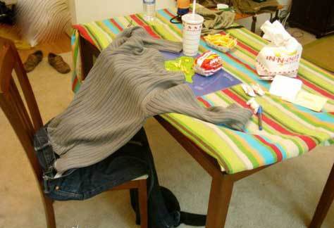 các bộ quần áo, giày dép rồi tạo khung cảnh sao cho giống như có một người nào
