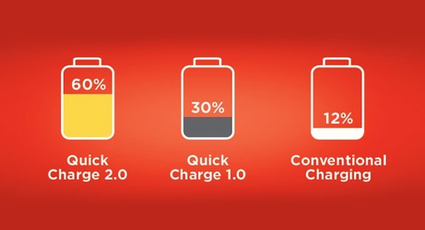 QuickCharge là một công nghệ sạc nhanh mà Qualcomm phát triển trên dòng chip phiên bản 8xx. QuickCharge 2.0 là chuẩn mới được hãng công bố từ hồi tháng 6 năm nay và các mẫu smartphone cao cấp như Samsung Galaxy S5, Note 4, HTC One (M8), LG G3, Sony Xperia Z3, Moto X (2014)...đều đã tích hợp sẵn.