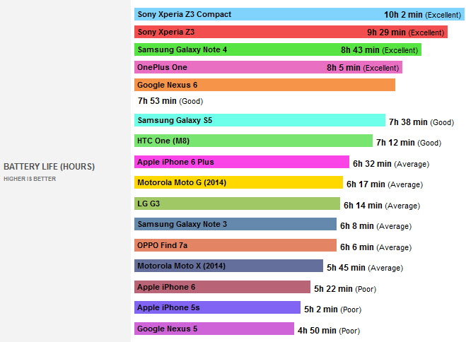Năm ngoái, Galaxy Note 3 là một trong chiếc điện thoại có thời gian sử dụng “trâu” luôn đứng trong top đầu bảng xếp hàng của Phonearena. Sau hàng loạt các sản phẩm mới ra mắt, bảng xếp hạng đã thay đổi, Note 3 bị đẩy xuống phía dưới.