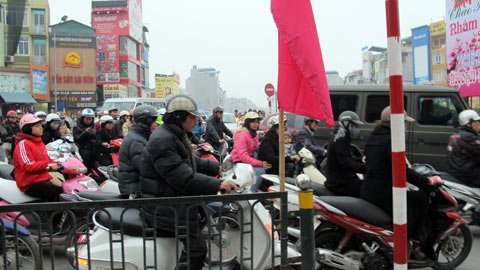 | Tình trạng ùn tắc cục bộ trên Đê La Thành chỉ xảy ra gần các ngã tư Nguyễn Chí Thanh, Láng Hạ. |