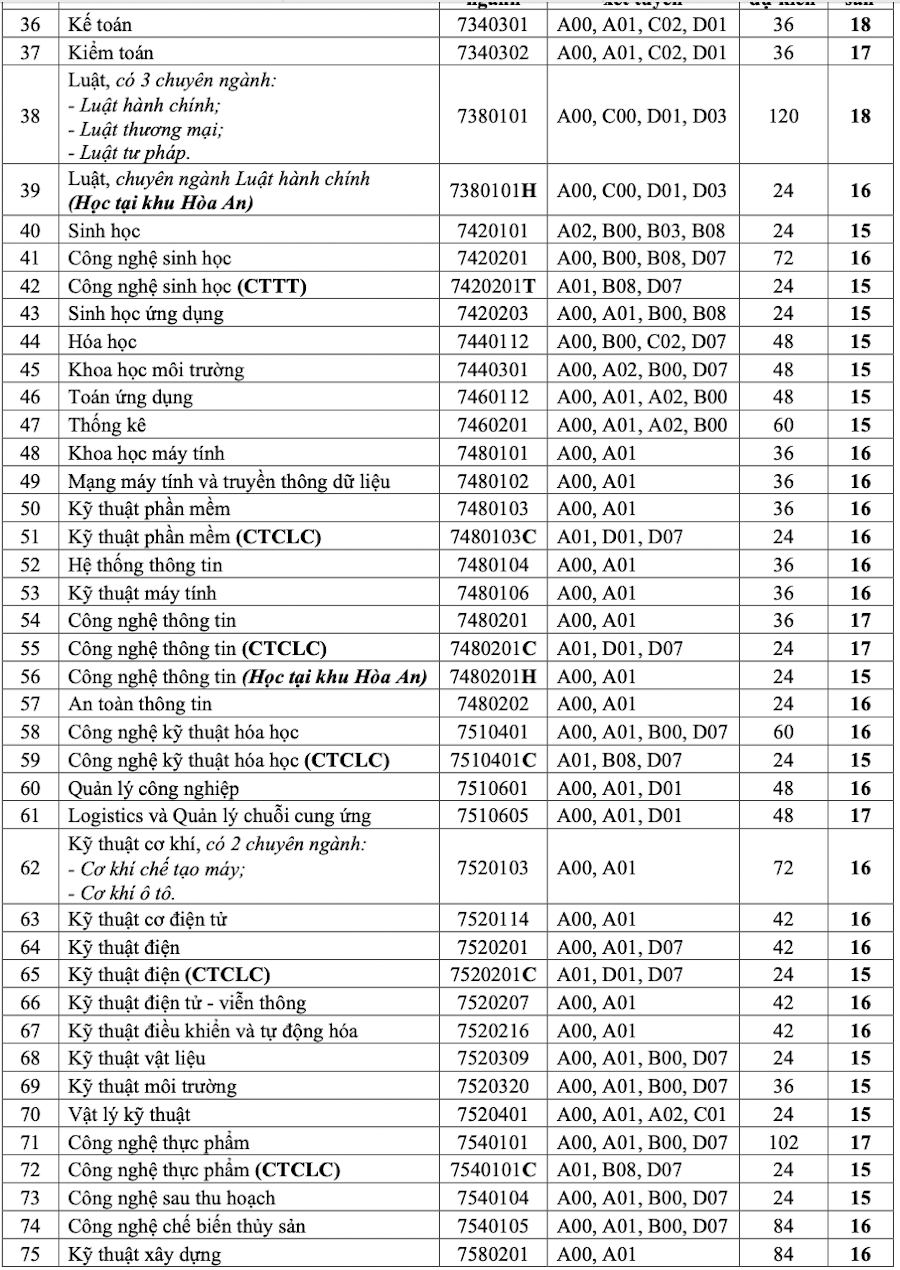 Đối với ngành có nhiều chuyên ngành, thí sinh đăng ký xét tuyển theo ngành và được chọn học 1 chuyên ngành khi làm thủ tục nhập học vào Trường.
