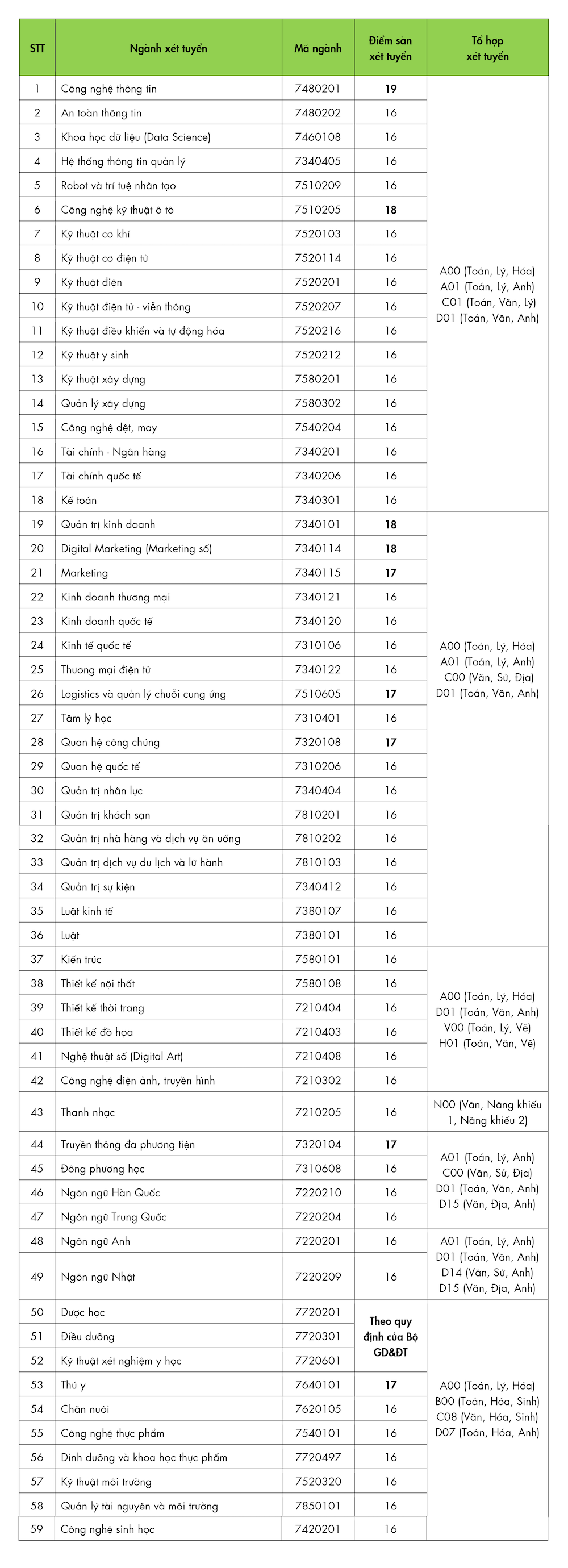 Các ngành còn lại có điểm sàn xét tuyển từ 16 điểm.