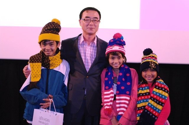 Ông Park Nark Jong, Giám đốc Trung tâm Văn hóa Hàn Quốc tại Việt Nam cùng các em nhỏ thiệt thòi.