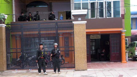 Họ tạo vòng vây tứ phía, phá cửa kính, khống chế nhóm tay chân cảnh giới phía dưới, xông lên tầng 4 của Nhà nghỉ Tuấn Sơn.