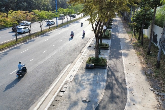 Theo thiết kế, tuyến đường có quy mô 6 làn xe, mặt cắt ngang rộng 34m, được đầu tư đầy đủ vỉa hè, dải phân cách, hệ thống chiếu sáng và công viên ven sông, vừa đáp ứng nhu cầu giao thông vừa tạo điểm nhấn cảnh quan đô thị.