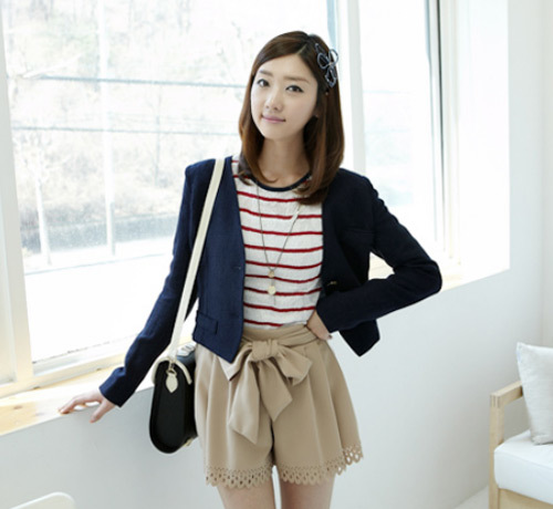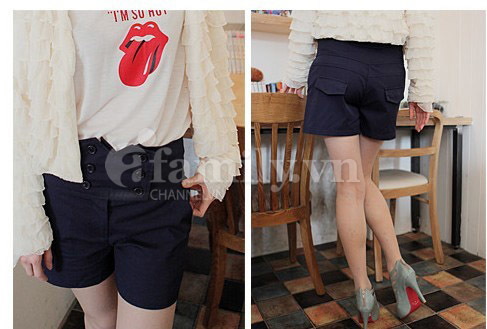 Quần short cạp cao chính là một "item" vô cùng quan trọng dành cho các cô nàng chân ngắn. Lợi thế của kiểu quần này là làm phần lưng của bạn ngắn, "kéo dài" chân bạn hơn, cố định phần eo cho cơ thể.