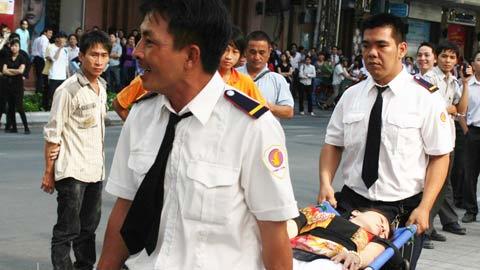 Các đội chữa cháy tại chỗ sử dụng bình chữa cháy, vòi phun nước để khống chế đám cháy lan rộng. Sau 5 phút, các xe chữa cháy đến hiện trường và cùng phối hợp với lực lượng PCCC cơ sở cứu hộ cứu nạn người qua các lối thoát hiểm và xe thang; triển khai đội hình xe nước ở các hướng để dập tắt đám cháy kịp thời. Các nhân viên cứu hộ sẽ tổ chức sơ cứu tại chỗ và đưa những người bị nạn đi cấp cứu tại bệnh viện gần nhất. Sau ít phút, đám cháy đã được dập tắt, bảo đảm an toàn cho toàn bộ người và tài sản.