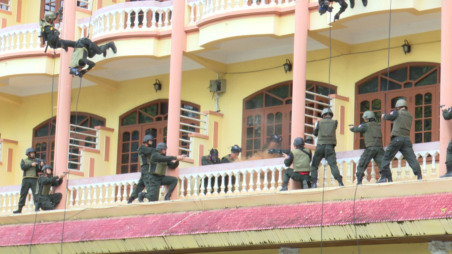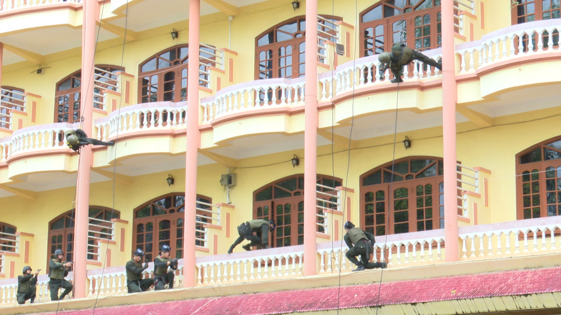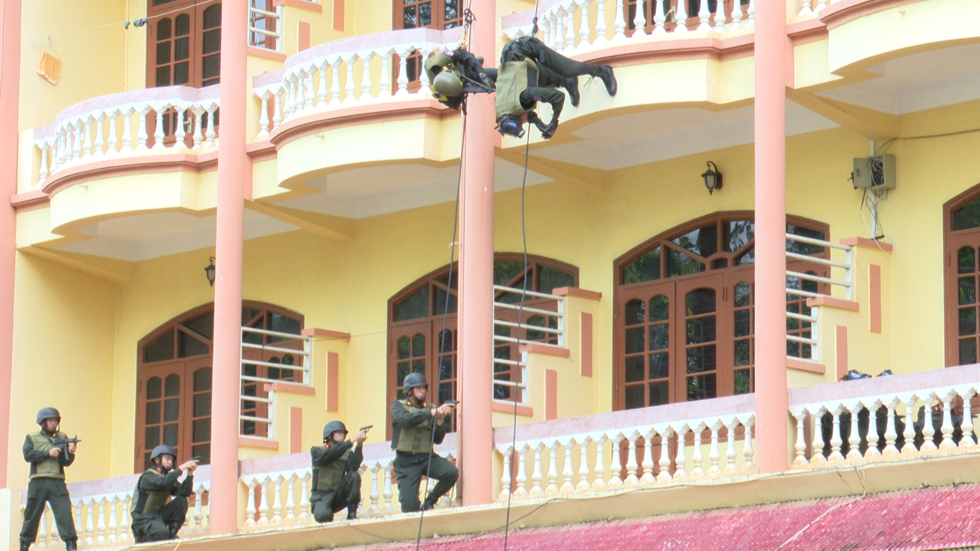 Dưới đây là một số hình ảnh buổi diễn tập thực binh phương án đánh bắt khủng bố, giải thoát con tin.