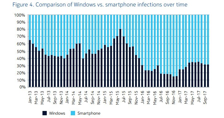Tỷ lệ lây nhiễm trên thiết bị di động ngày càng cao hơn so với laptop, PC.