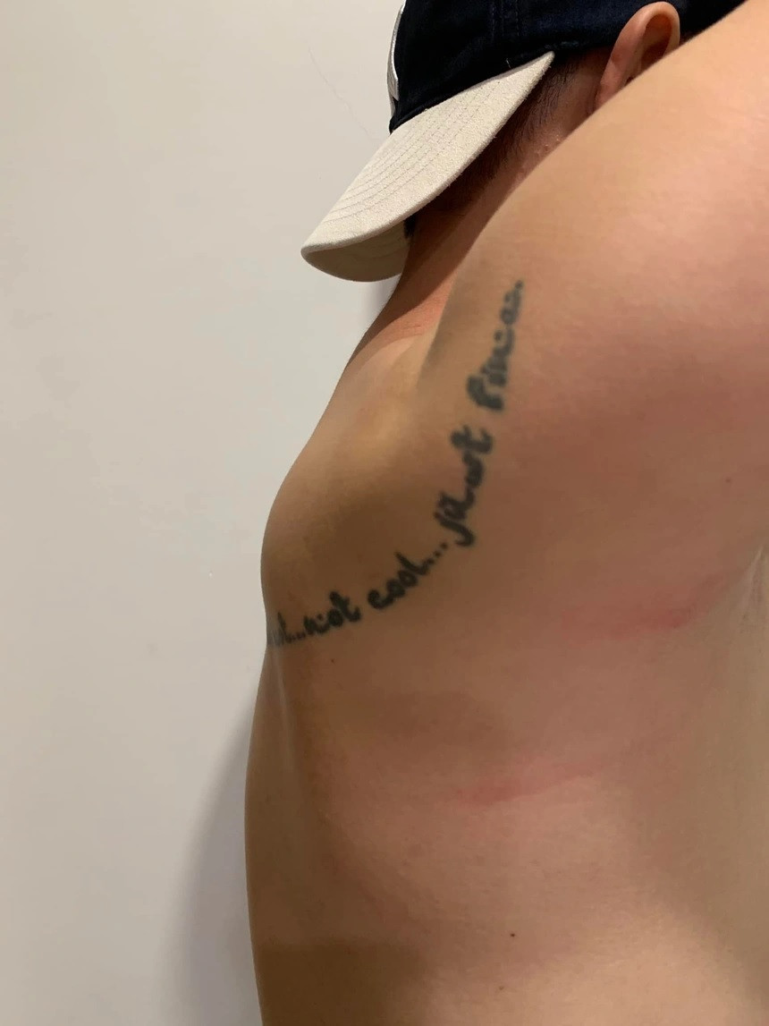 Anh Hoàng Anh chứng minh dấu vết bị hành hung.