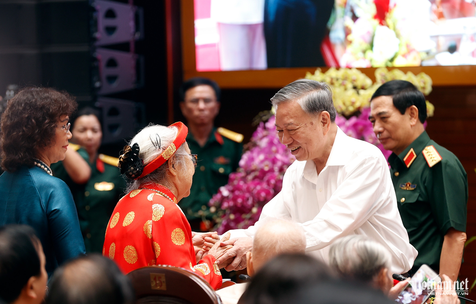 Sáng nay, Tổng Bí thư Tô Lâm gặp mặt đại biểu cán bộ lão thành cách mạng, tiền khởi nghĩa, Bà mẹ Việt Nam anh hùng, tướng lĩnh, Anh hùng Lực lượng vũ trang nhân dân, nhân dịp kỷ niệm 78 năm Ngày Thương binh-Liệt sĩ, 80 năm Cách mạng Tháng Tám thành công và Quốc khánh 2/9.
