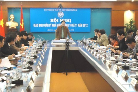 | Bộ trưởng Bộ TT&TT Nguyễn Bắc Son công bố việc điều chuyển Cục trưởng Lưu Vũ Hải về làm Chủ tịch VTC tại cuộc họp Giao ban Quản lý Nhà nước Bộ TT&TT sáng 5/12/2012. Ảnh: X.B. |