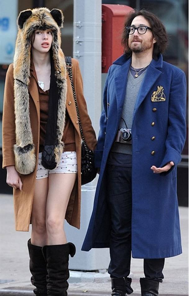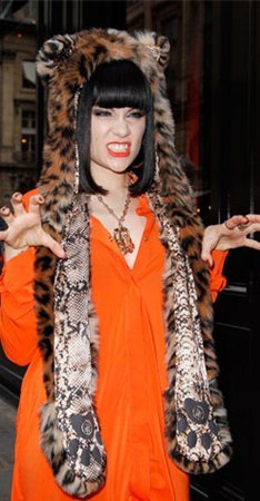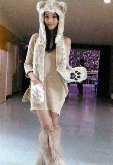 | Charlotte Kemp Muhl hoàn toàn giống một nàng gấu dễ thương với mũ gấu, áo nâu và chân boot đen |