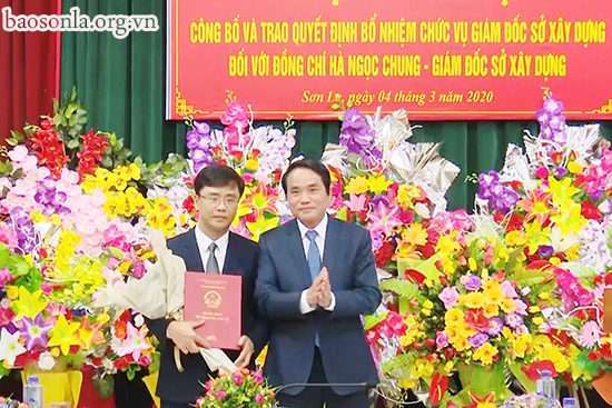 Sơn La: Ngày 4/3, Phó Chủ tịch UBND tỉnh Lê Hồng Minh đã trao quyết định của Chủ tịch UBND tỉnh về việc bổ nhiệm ông Hà Ngọc Chung, Phó Giám đốc Sở Xây dựng giữ chức vụ Giám đốc Sở Xây dựng.