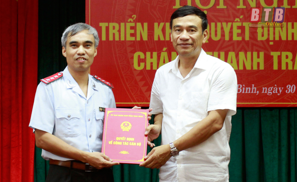 Ngày 30/8, Phó Bí thư Tỉnh ủy, Chủ tịch UBND tỉnh Thái Bình Đặng Trọng Thăng đã trao quyết định bổ nhiệm ông Trần Trung Dũng giữ chức vụ Chánh Thanh tra tỉnh Thái Bình, thời hạn 5 năm kể từ ngày 30/8/2019.