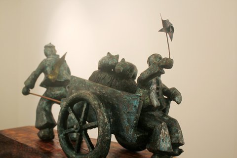 Khác với các tác phẩm có tính triết học về tri thức thành thị của Khổng Đỗ Tuyền, những người dân tộc vùng núi phía Bắc của nhà điêu khắc Phạm Thái Bình hiện lên vô tư và vui vẻ hơn nhiều. Anh sử dụng chất liệu composite phủ sơn mài với bề mặt lấp lánh như đồng được phương Tây ưa chuộng.