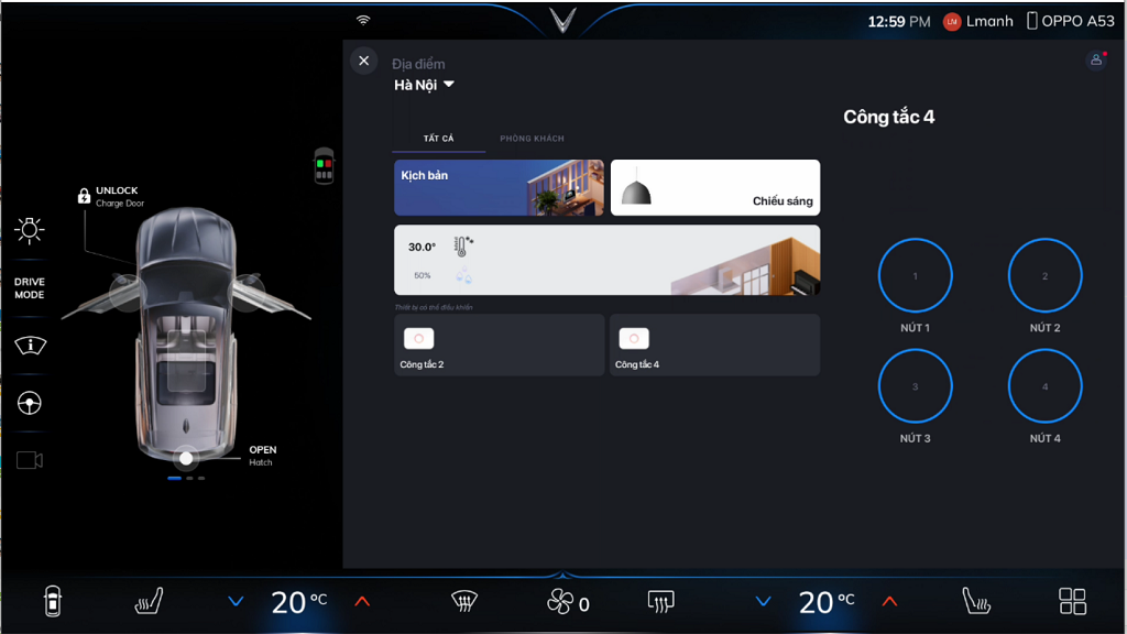 Bắt đầu bằng “Hey VinFast”, sau đó sử dụng những câu lệnh thuần Việt, chủ nhà có thể điều khiển đóng mở rèm cửa, tắt bật hệ thống chiếu sáng, theo dõi kiểm soát an ninh gia đình từ xa… Các thao tác điều khiển nhà thông minh thông qua màn hình giải trí trung tâm 15,6 inch của VinFast VF 8 cũng trực quan và dễ dàng.