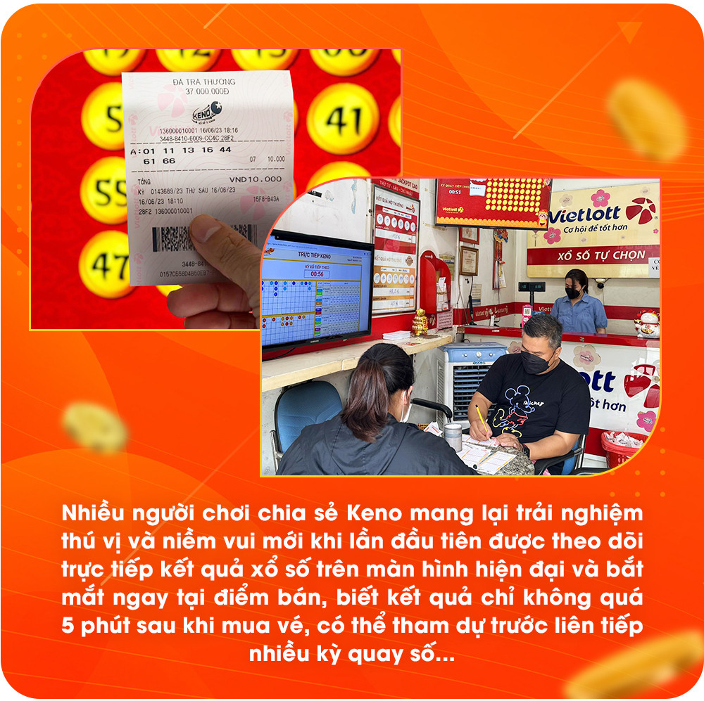 Nhiều người chơi cho biết yêu thích nhất là Keno bậc 2, sau đó đến Keno bậc 5, Keno bậc 3, Keno bậc 7... Trong đó, chỉ tính riêng Keno bậc 2, sau gần 4 năm đã phát hành gần 24 triệu vé và trả thưởng hơn 707 tỉ đồng cho những người chơi may mắn.