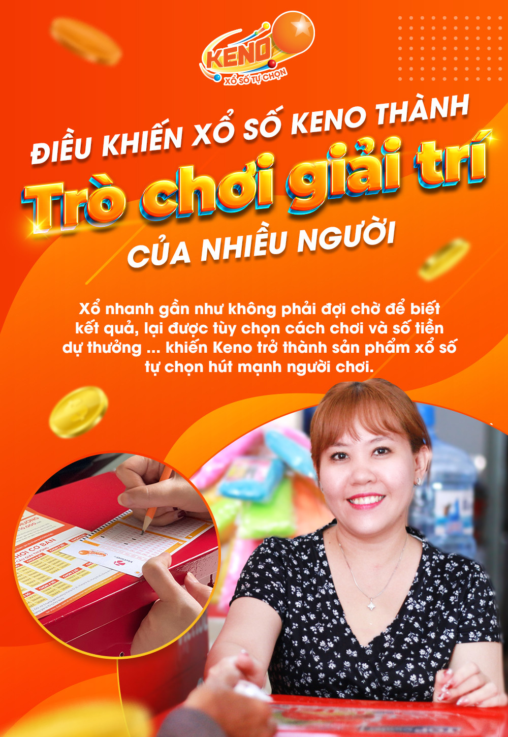 Vé số Keno được bán liên tục trong suốt thời gian của mỗi kỳ quay, đồng thời kết quả mở thưởng sẽ được tường thuật trực tiếp trên màn hình lớn tại các điểm bán hàng của Vietlott. Những điều này kết hợp với thời gian mở thưởng nhanh, cách chơi đa dạng,... đã mang một làn gió mới đến lĩnh vực giải trí và kinh doanh xổ số tại Việt Nam, đưa Keno trở nên quen thuộc với nhiều khách hàng Vietlott.