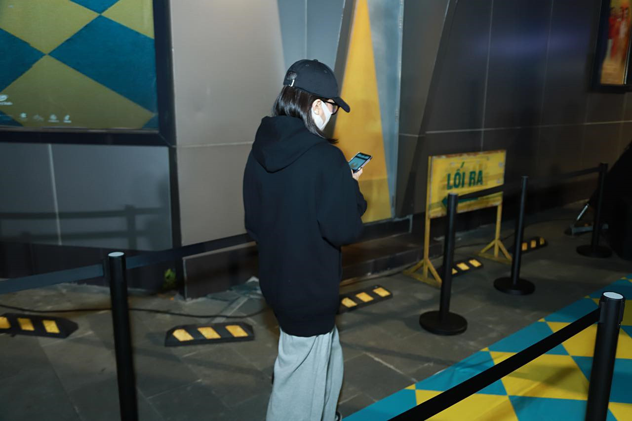 Diệu Nhi bất ngờ "đột kích" ông xã Anh Tú trong hậu trường. Cô không báo trước, trùm kín mít đến sự kiện ra mắt phim mới của chồng rồi nói: "Chồng ơi, cố lên".